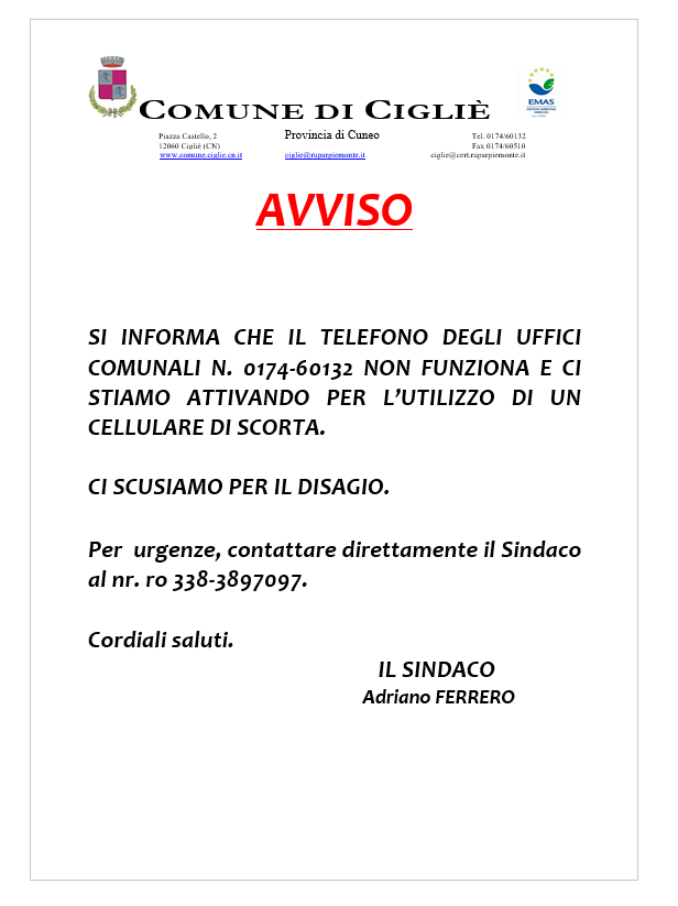 Avviso per la popolazione - Centri di Raccolta Mobili