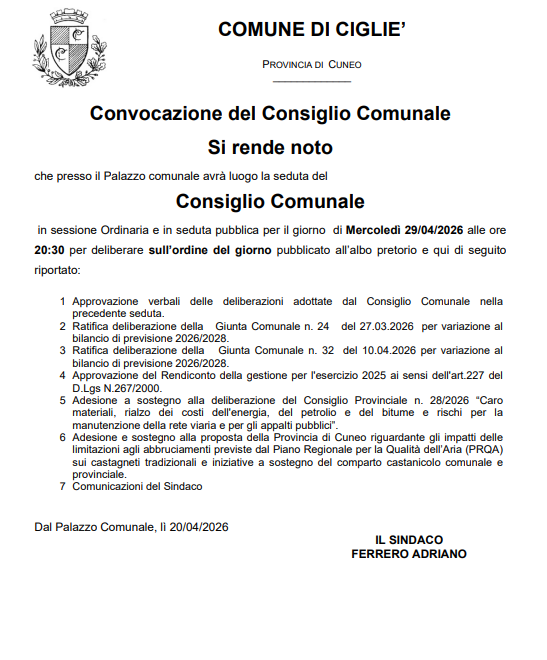 Mercoledì 29 aprile 2026 alle h. 20,30
